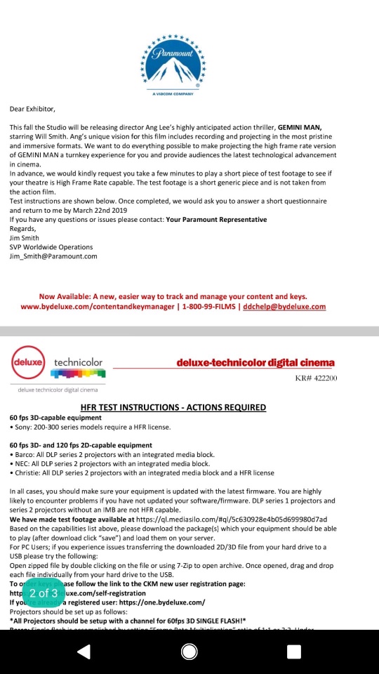 To make sure these visual effects are not lost in theatres, Paramount sent out a letter to theatres asking them to show Gemini Man both in 60 FPS 3D and 120 FPS 3D. Ang Lee had the same request for his 2016 movie, Billy Lynn.