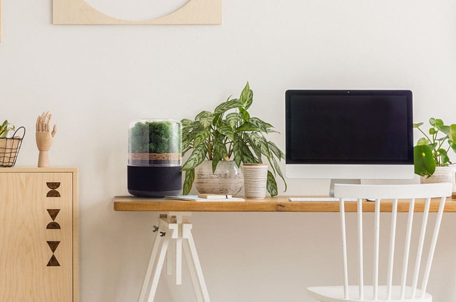 Moss captures large particle matter like dust and animal dander from the air. The activated charcoal takes out particle matter and odours from the air while the husk traps harmful substances. Then, a unique type of wool used by NASA to combat airborne viruses comes to play, making up a system as effective as a HEPA filter but 100% biodegradable.