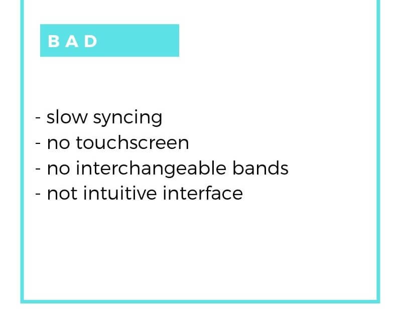 An interchangeable band would have been also nice. However, I can live with a fixed one, but I can’t say the same about a counterintuitive interface and bad syncing.