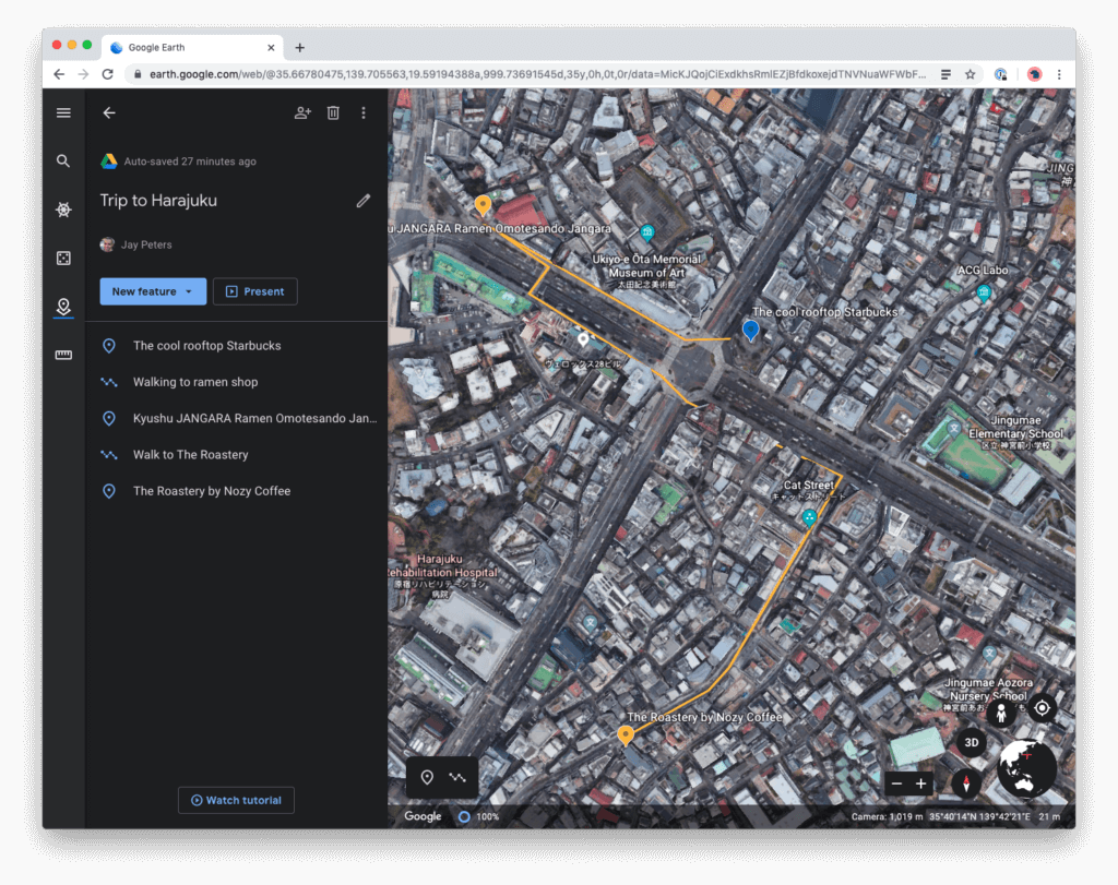 Google Earth has a feature in the “Voyager” section, where you can see professionally made 3D tours of spectacular places all over the planet.