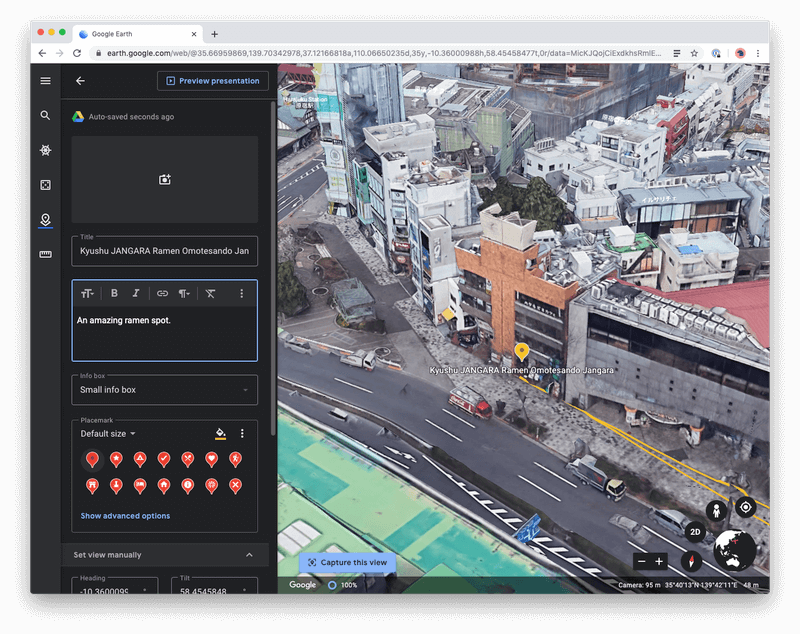 In these screenshots from The Verge, directions are shown to a Tokyo restaurant with a capture of a specific camera angle making it easier to find.