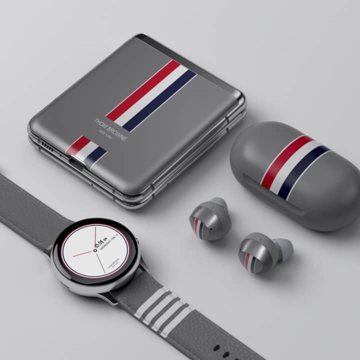 Besides Black and Gold, the Z Flip comes in Purple, too, and in the color scheme representative of the Thom Browne brand. Indeed, this is the Z Flip Special Edition, for Thom Browne fans. It’s also accompanied by the Buds Plus and the Watch Active 2: