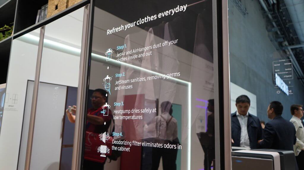 Here, three products got our attention: the modular fridge, the AirDresser and new Dual Cook Steam oven. The technology is not groundbreaking from what you’ve seen last year from Samsung and other brands, like LG, but they do put an emphasis on design and fit. The fridge is like an IKEA modular cabinet, if you ask me, while the AirDresser is a multifunctional wardrobe while the oven adds steam to Samsung’ Dual Cook kitchen appliances.