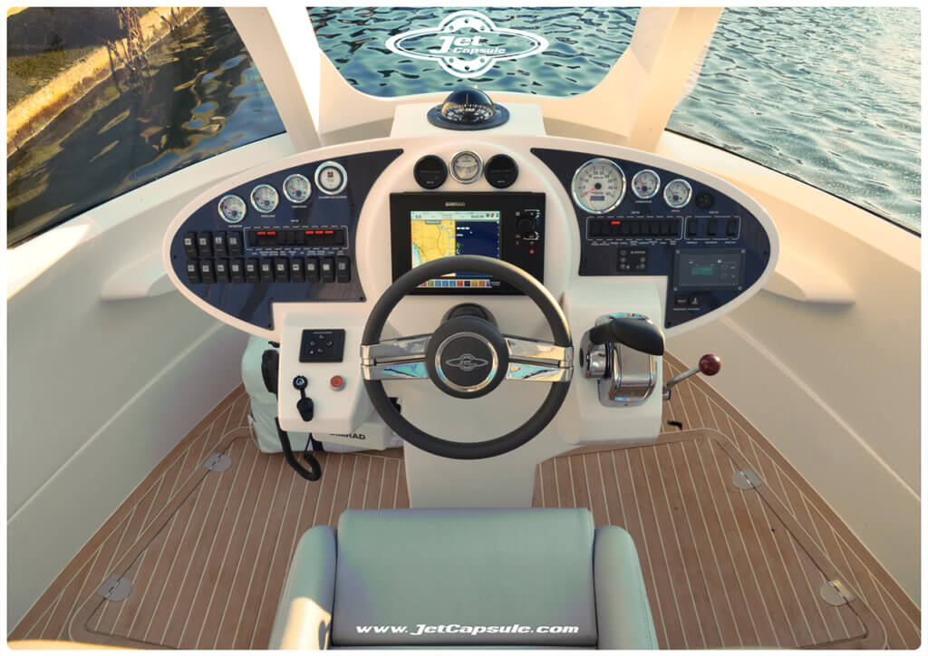 Italian company Jet Capsule aims to deliver to the waves the same power we bring onto the streets with The Royal Version 001, a mini capsule yacht that measures 27ft (8m) long and 12ft (3.6m) wide and can fit around 12 passengers inside.