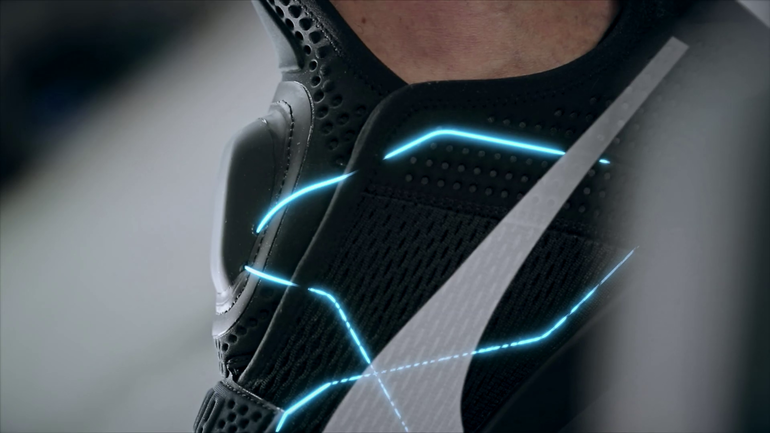 When you tighten, the shoes will light up the panel in blue LEDs thanks to a removable battery that can be charged wirelessly and lasts for up to 7 days.