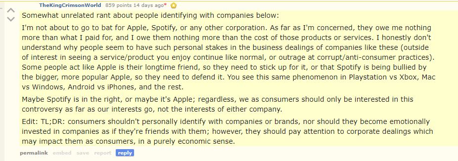 This particular paragraph might spur Spotify users into taking a stand against Apple: