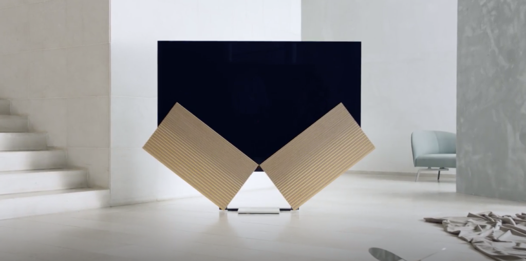 The impressive Beovision Harmony made its debut at the 2019 Milan Design Week. The device features two oak & aluminum-made “wings” that house its audio system. Already promising, isn’t it? Normally, the two wings sit together as a square in front of the television. Once switched on, the wings fold out and the screen rises, acting as a front-facing soundbar. Now, your cinematic experience is complete!